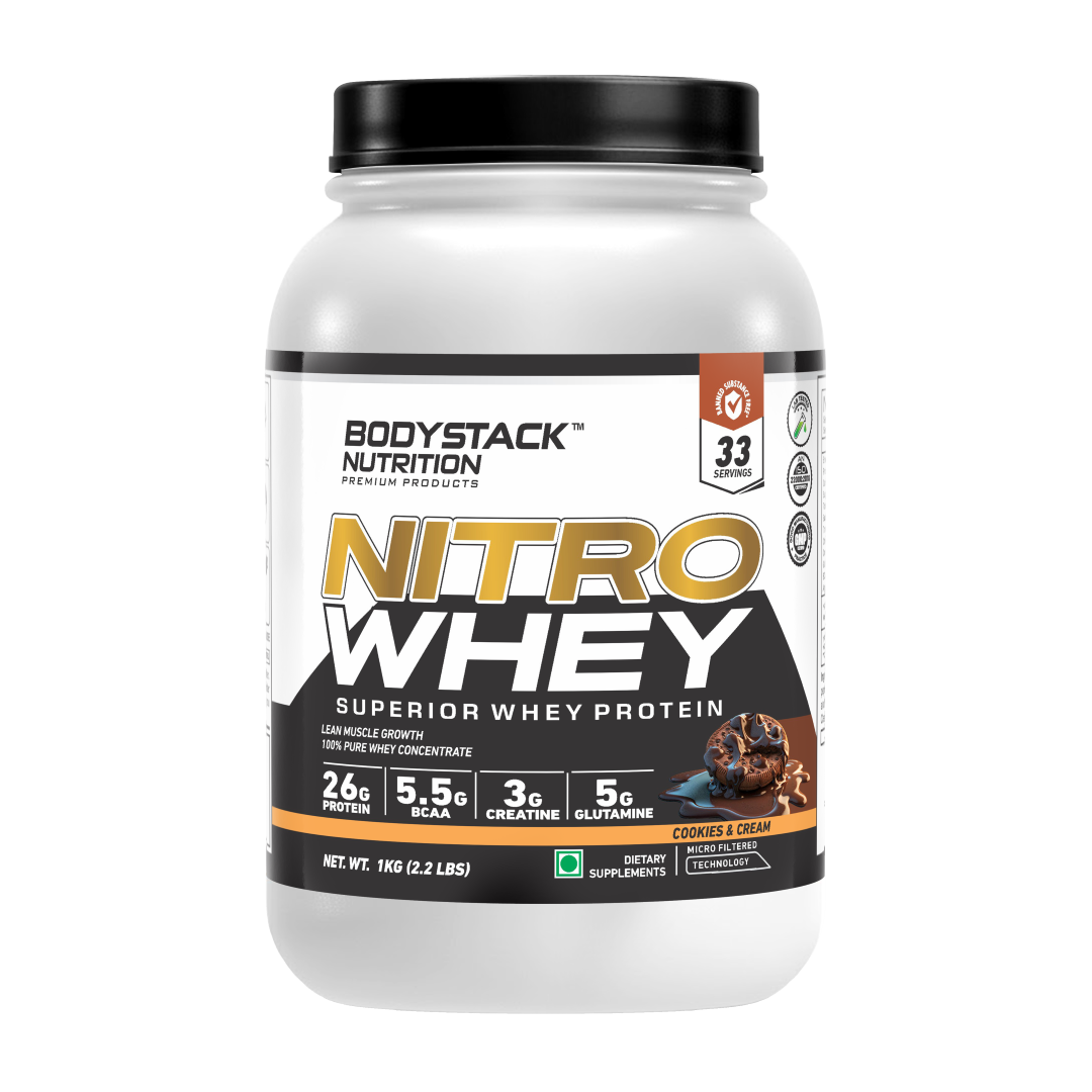 Body Stack Nutrition Nitro Whey Protein is power packed with 26 grams of whey protein loaded with essential amino acids. It is a quick absorbing whey protein blend which allows your body to digest the nutrients and helps to promote lean muscle gains.