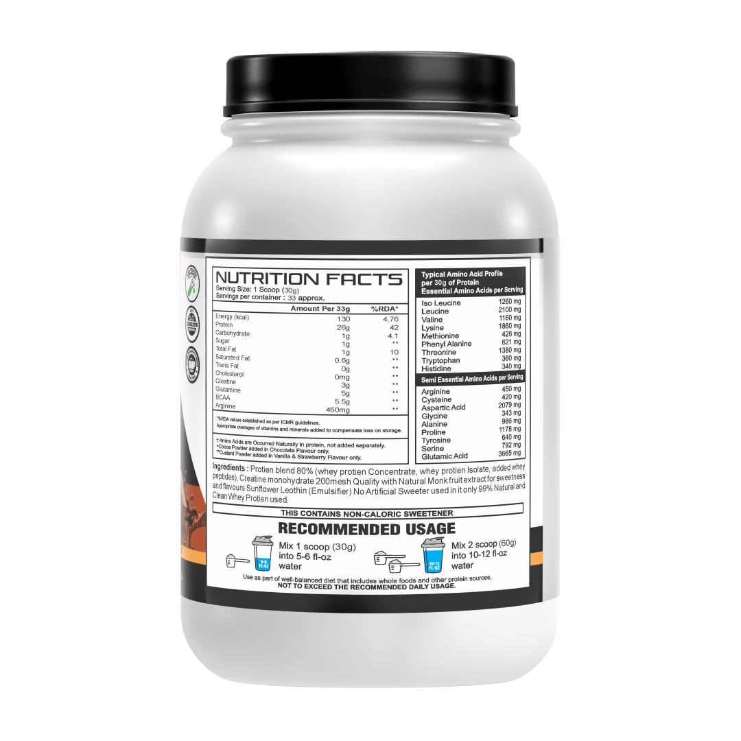 Mix 1 scoop [30g] woith 200ml of water or milk in a shaker or blender. Consume 1 serving between meals and another immediately post exercise or physical activity