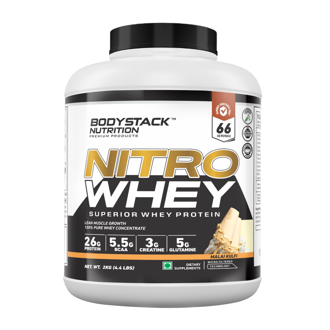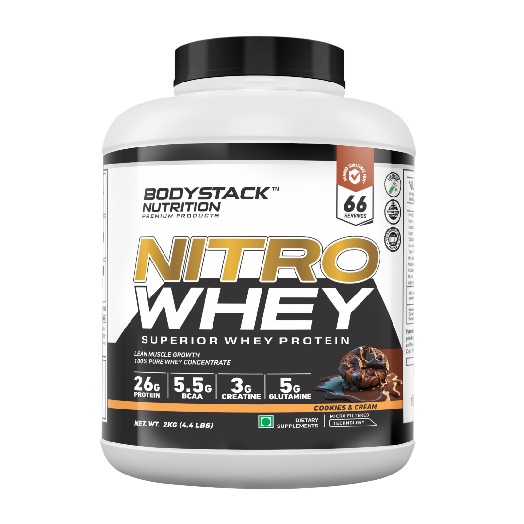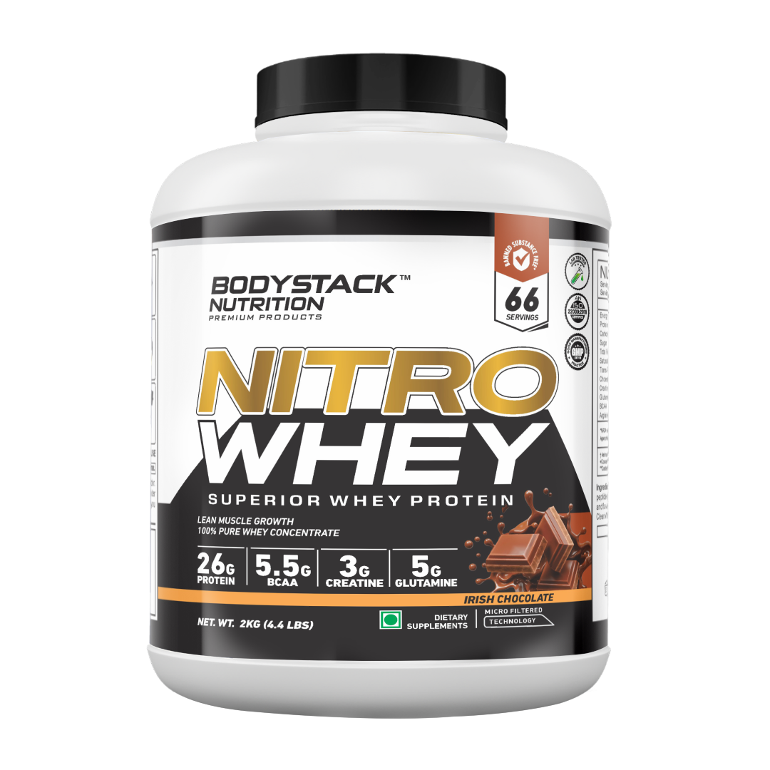 Body Stack Nutrition Nitro Whey Protein is power packed with 26 grams of whey protein loaded with essential amino acids. It is a quick absorbing whey protein blend which allows your body to digest the nutrients and helps to promote lean muscle gains.