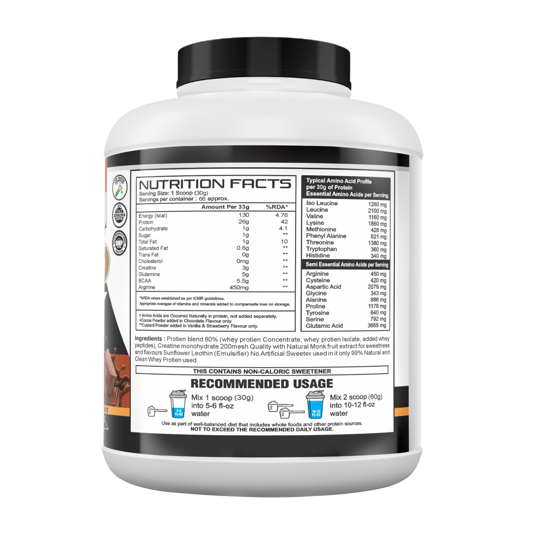 Mix 1 scoop [30g] woith 200ml of water or milk in a shaker or blender. Consume 1 serving between meals and another immediately post exercise or physical activity